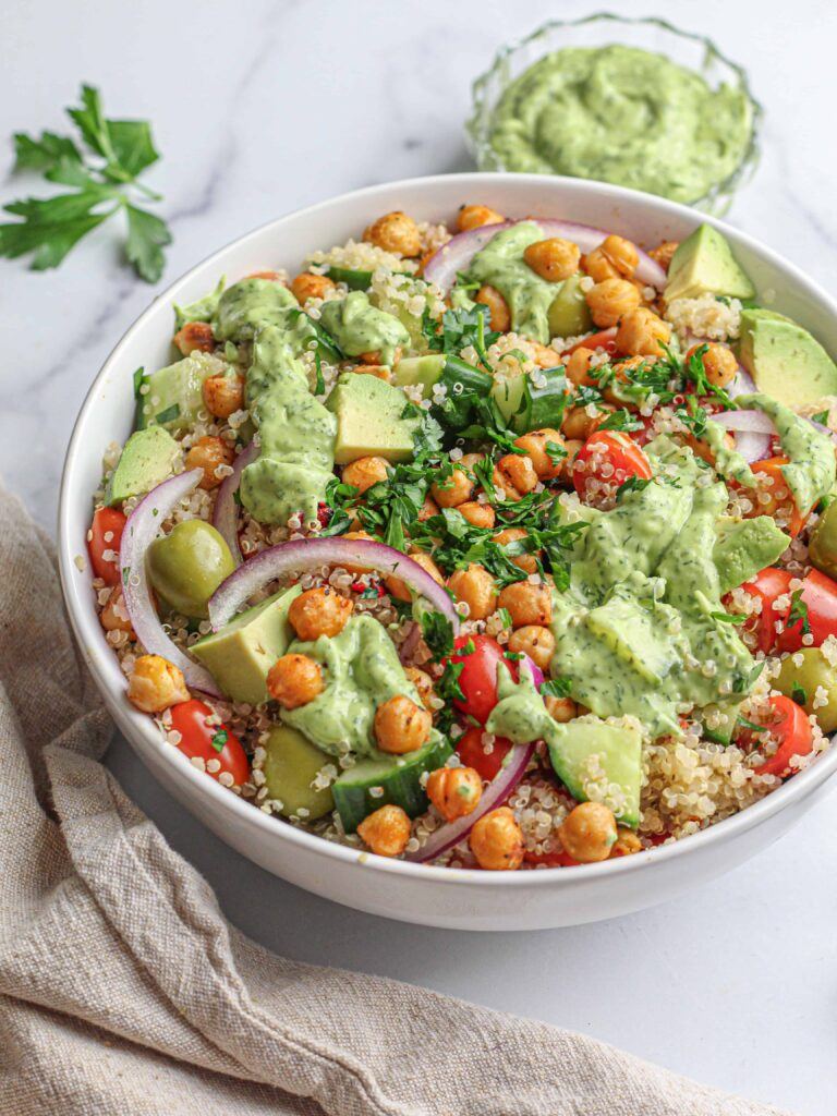 - Quinoa Salad with Chickpeas and Avocado: