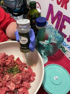 In the same pan, add the chopped vegetables with a bit more minced garlic, chives, Italian seasoning, and ½ cup beef stock. Cook until veggies are soft. - Combine Meat and Flavorings