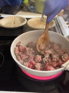 Spoon the beef and vegetable mixture into the prepared pie crusts, filling nearly to the top. - Top with Crescent Rolls