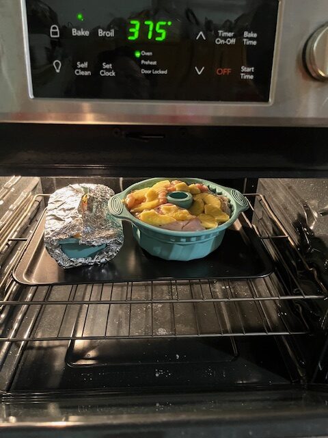 Bake for 1 hour, or until chicken is golden and cooked through, and vegetables are tender.